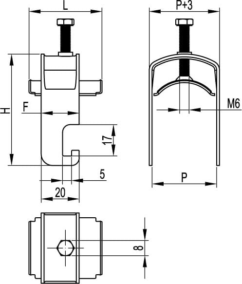 | Диапазон зажима, мм | 14...20 | Материал зажима | Сталь |